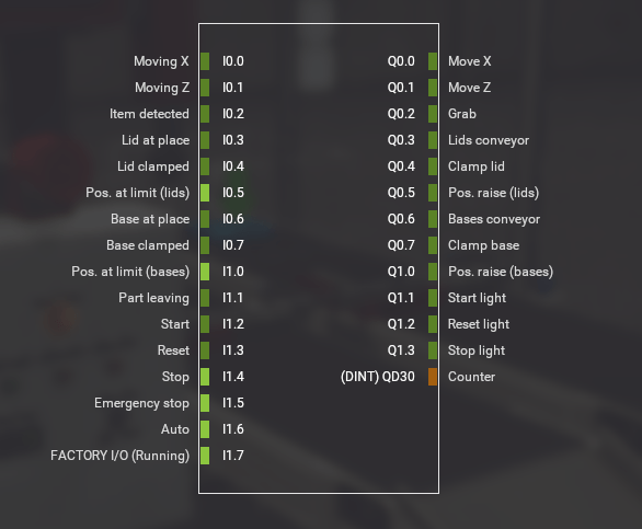 Etiket tablosu ve Factory I/O üzerindeki giriş-çıkış bağlantılarını aşağıdaki şekilde yaptım.