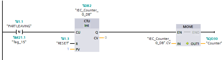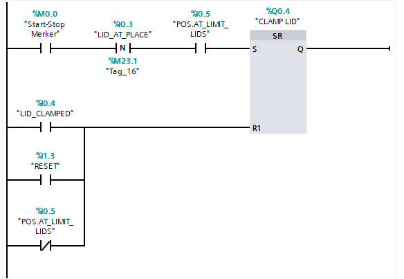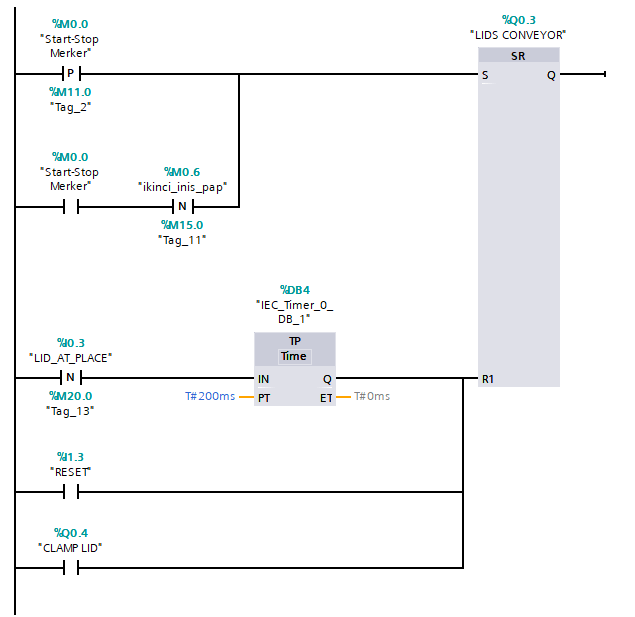 Bu networkde “Lid” kelepçenin içine geldiğinde kelepçeyi kapatacak olan Q0.4 aktif olacak. Kelepçe “Lid’i” olması gerektiği yere pozisyonladıktan sonra deaktif olacak.