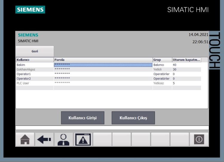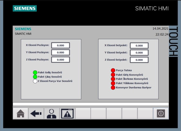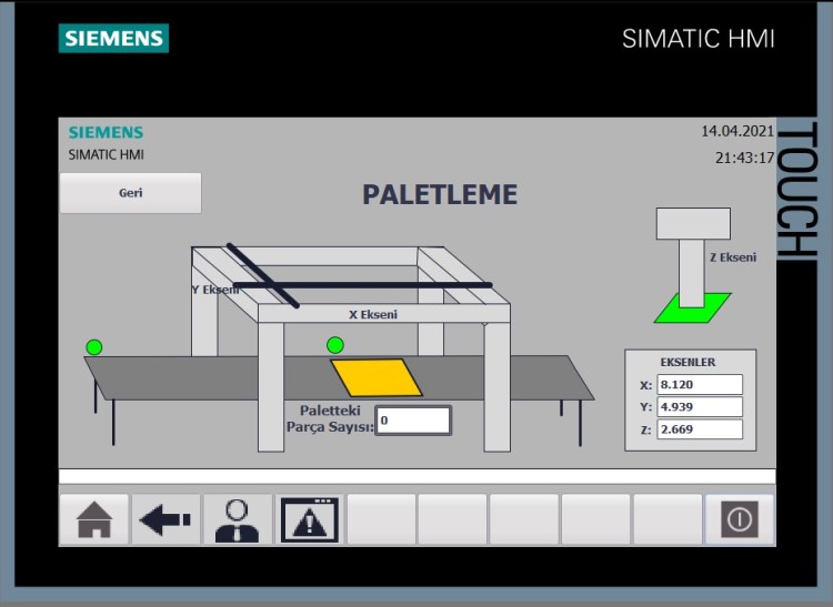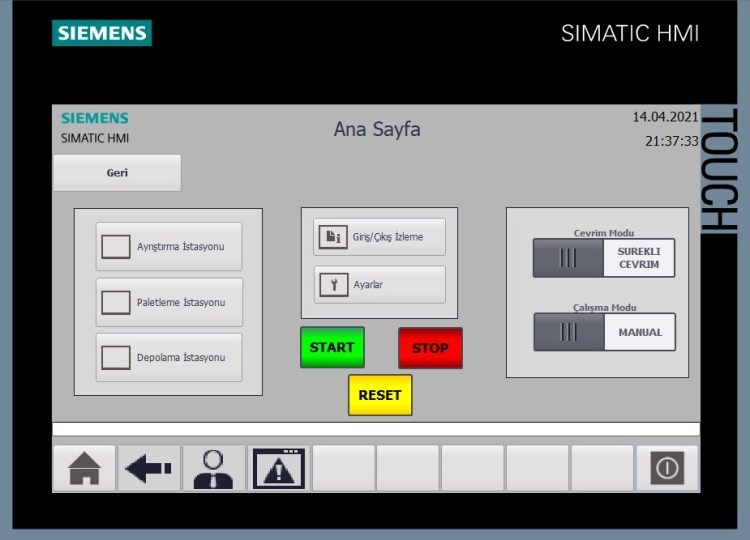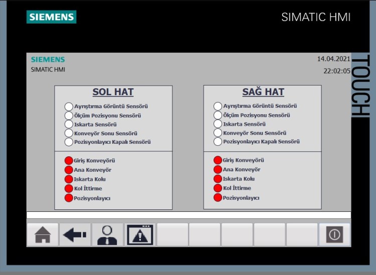 PLC programı bittikten sonra HMI tasarımını yaptım. HMI ekranların görüntüleri de aşağıdaki gibidir.