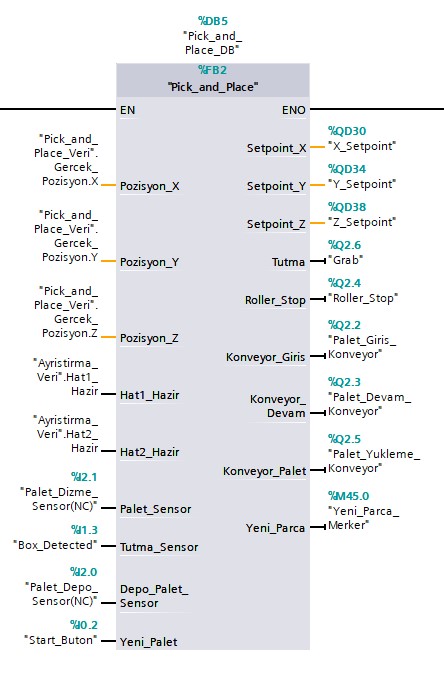 Daha sonra Pick and Place kısmının programını yazdım. Bu fonksiyonu SCL ile yazdım.