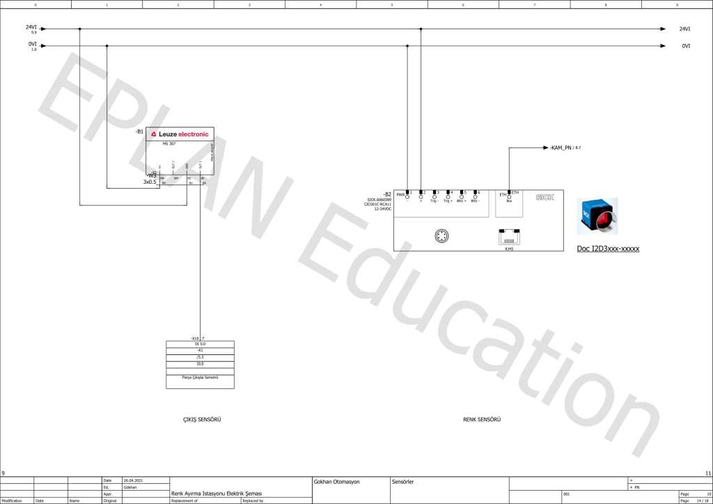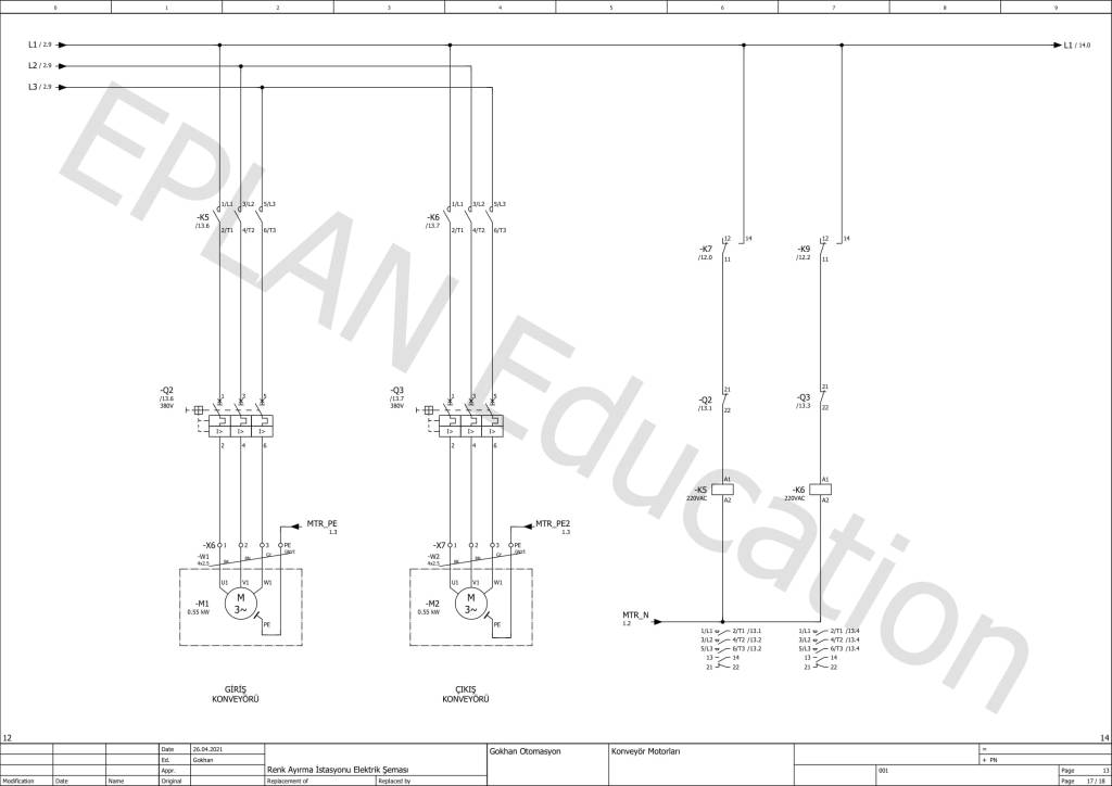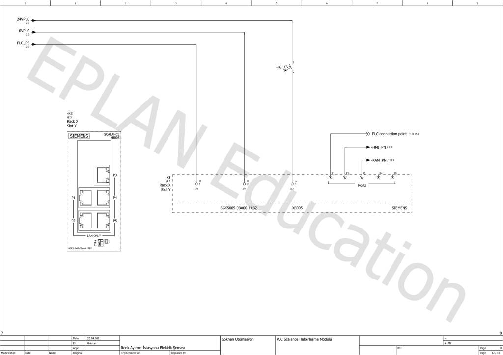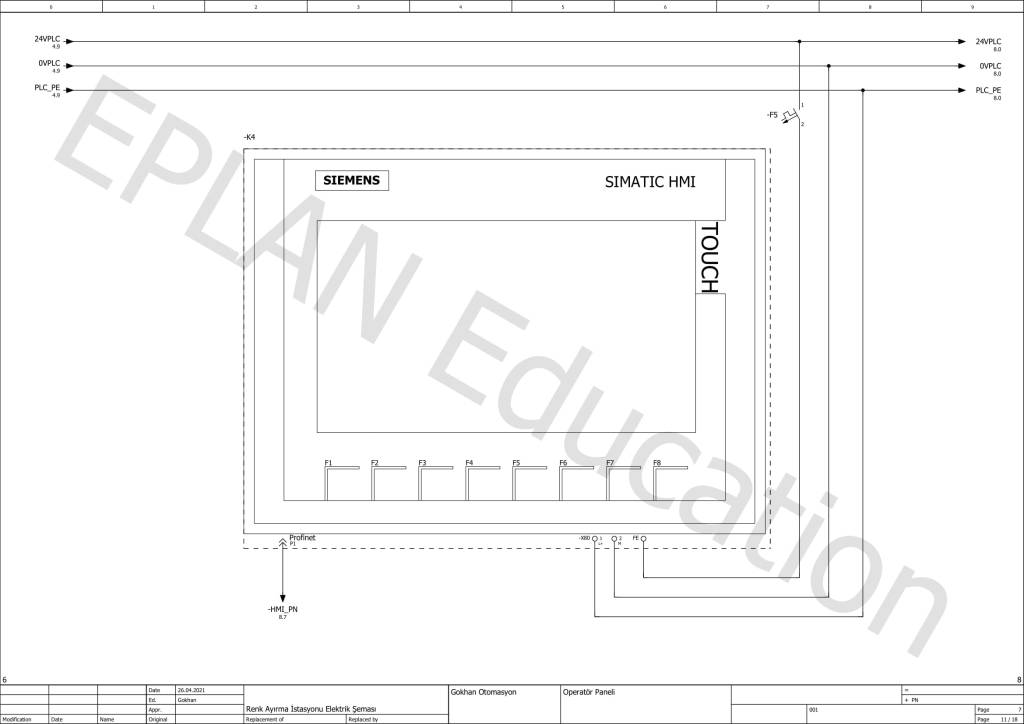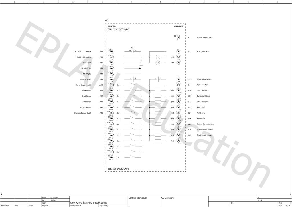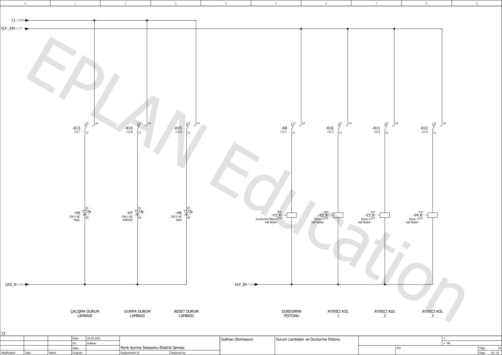 Bu projede Factory IO’daki otomasyon projelerinden biri olan renk ayırma istasyonunun elektrik bağlantı şemasını EPLAN üzerinde tasarladım. Sistemin genel görünümü ve panonun görünümü aşağıdaki gibidir.