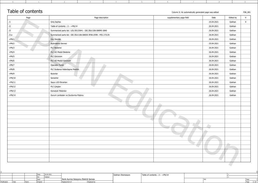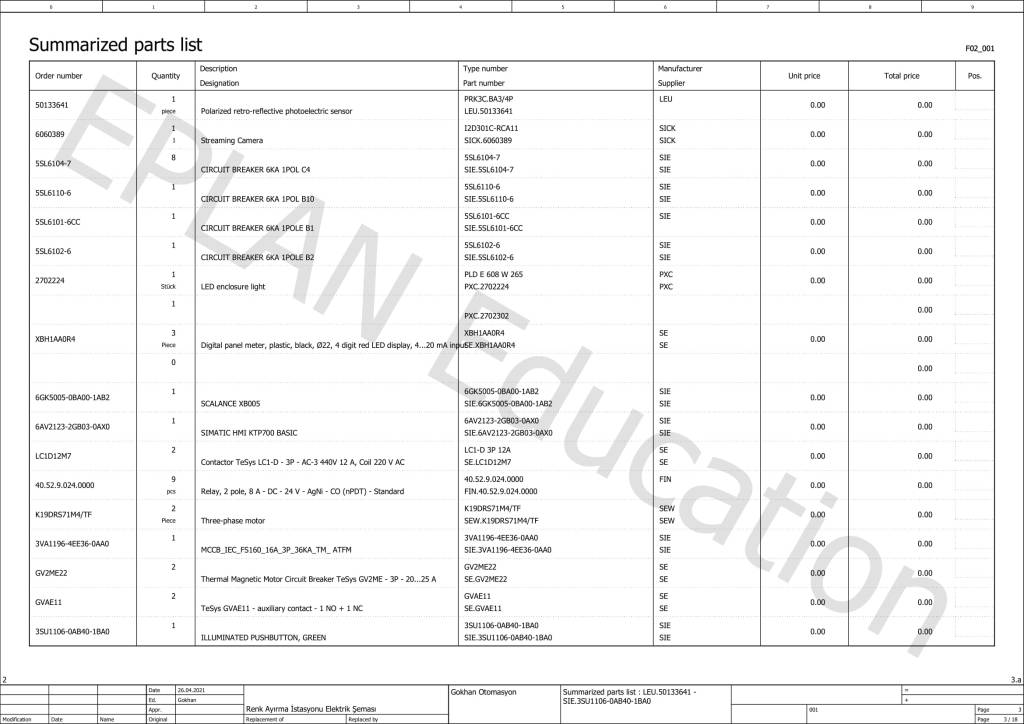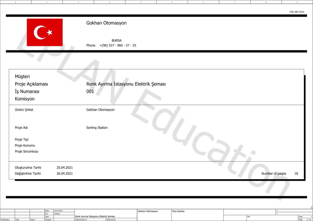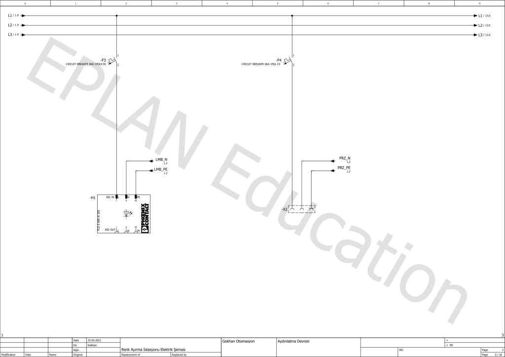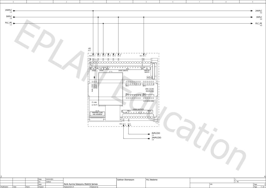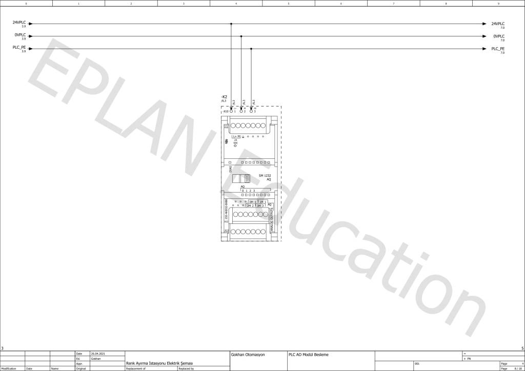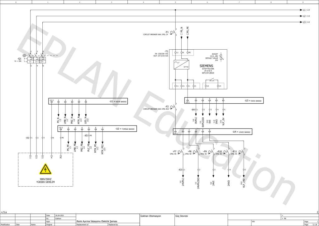 Bu projede Factory IO’daki otomasyon projelerinden biri olan renk ayırma istasyonunun elektrik bağlantı şemasını EPLAN üzerinde tasarladım. Sistemin genel görünümü ve panonun görünümü aşağıdaki gibidir.